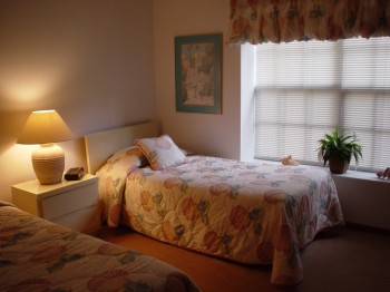 Perfect if you have children or a guests staying the night. 2 twin beds with a large closet area.